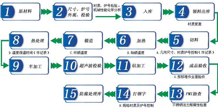 原材料采用中國(guó)境內(nèi)大型鋼鐵公司的優(yōu)質(zhì)鋼材,標(biāo)準(zhǔn)有ASTM A105、C22.8、C21、 Rst37.2、S235JRG2、P355NH、P265GH、1.0565、SS400、A350LF2 、 F304、F304L、F316、F316L、F316Ti、F321、F317L(UNS S31703)、A182 F51(UNS S31803)、A182 F53(UNS S32750)、1.4541、1.4571、1.4404、1.4401 、1.4462 、1.4410 、A182-F11、A182-F12、ASTM A694 F52、F60、F65、F70 etc等